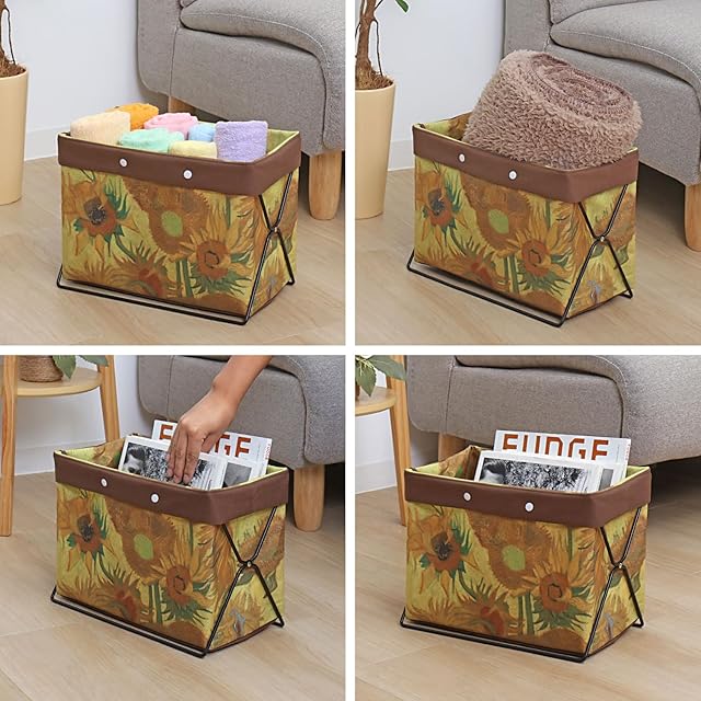 【ワイヤー付き収納ケース】:ゴッホが描いた『ひまわり』をプリントしたワイヤー付きの収納ボックス。