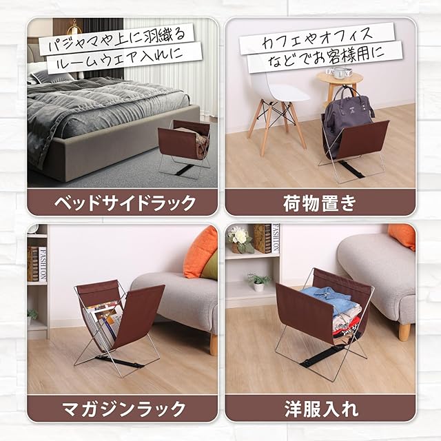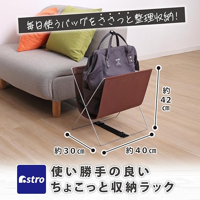 アストロ 荷物置き ブラウン ハンモック型 W40×D30×H42cm 【荷物入れ カバン置き 手荷物 収納ラック】 鞄入れ マガジンラック ちょい置き バスケット バッグスタンド 雑誌 新聞 サッと収納 リビング ソファーサイド 折りたたみ 横開きV字型で荷物の出し入れがスムーズ 620-82