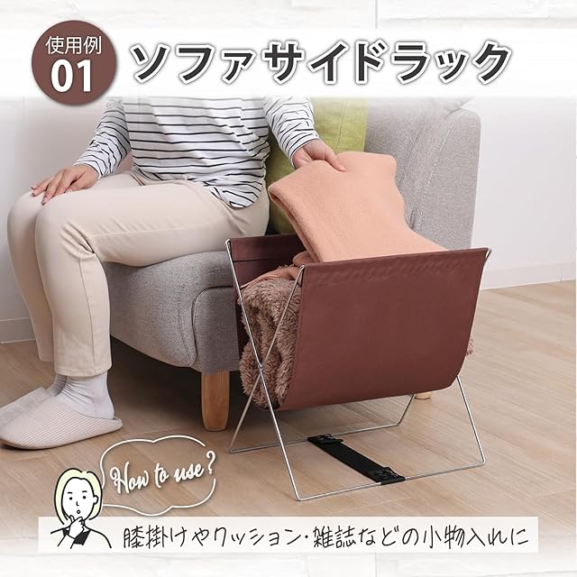 商品名:アストロ 荷物置き ブラウン ハンモック型 W40×D30×H42cm 【荷物入れ カバン置き 手荷物 収納ラック】 鞄入れ マガジンラック ちょい置き バスケット バッグスタンド 雑誌 新聞 サッと収納 リビング ソファーサイド 折りたたみ 横開きV字型で荷物の出し入れがスムーズ 620-82