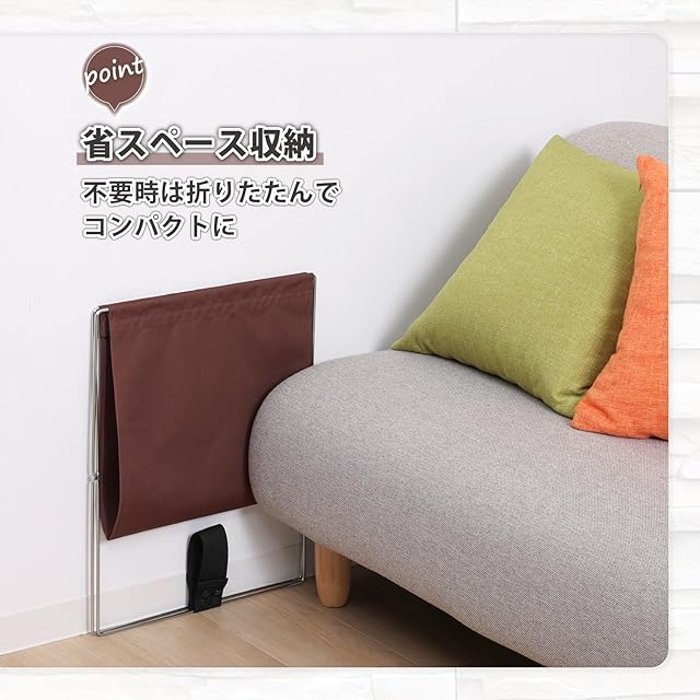 【ワイヤーでしっかり自立・折りたためる】:ワイヤーでしっかり自立し、使わないときは折りたためてスリムになるので、すき間に収納可能。