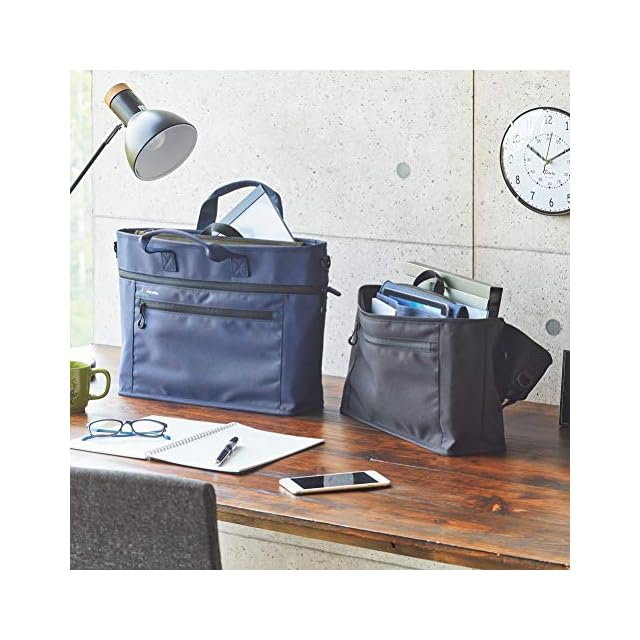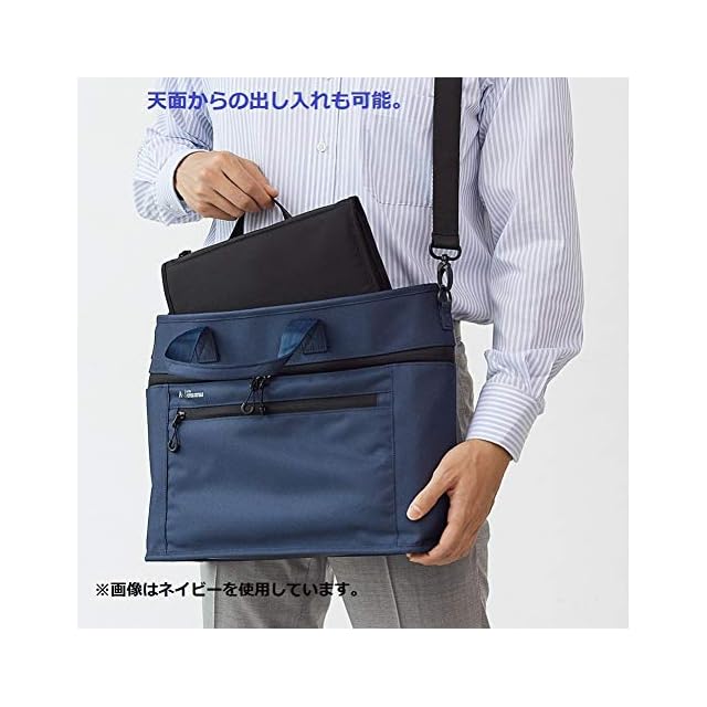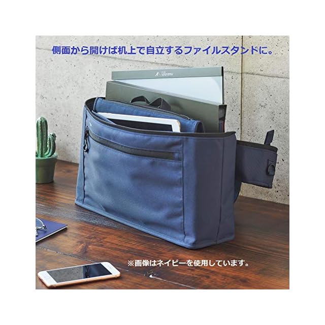 【特長】 バッグ側面のファスナーを開くとファイルスタンドと使用できるビジネスバッグ。