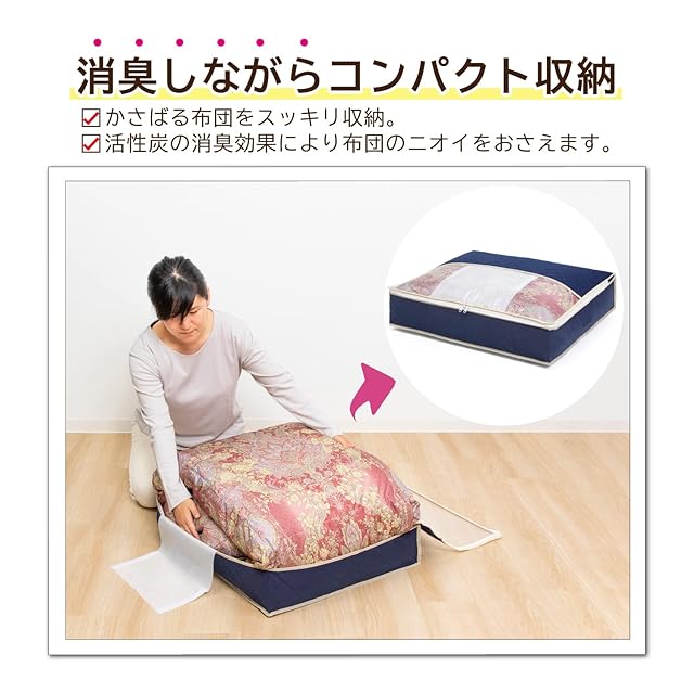 商品名:アストロ 羽毛布団 収納袋 シングル用 ネイビー 不織布 活性炭消臭 コンパクト 617-33