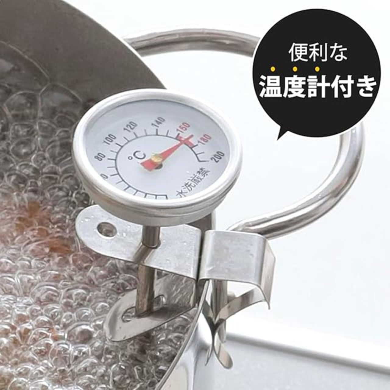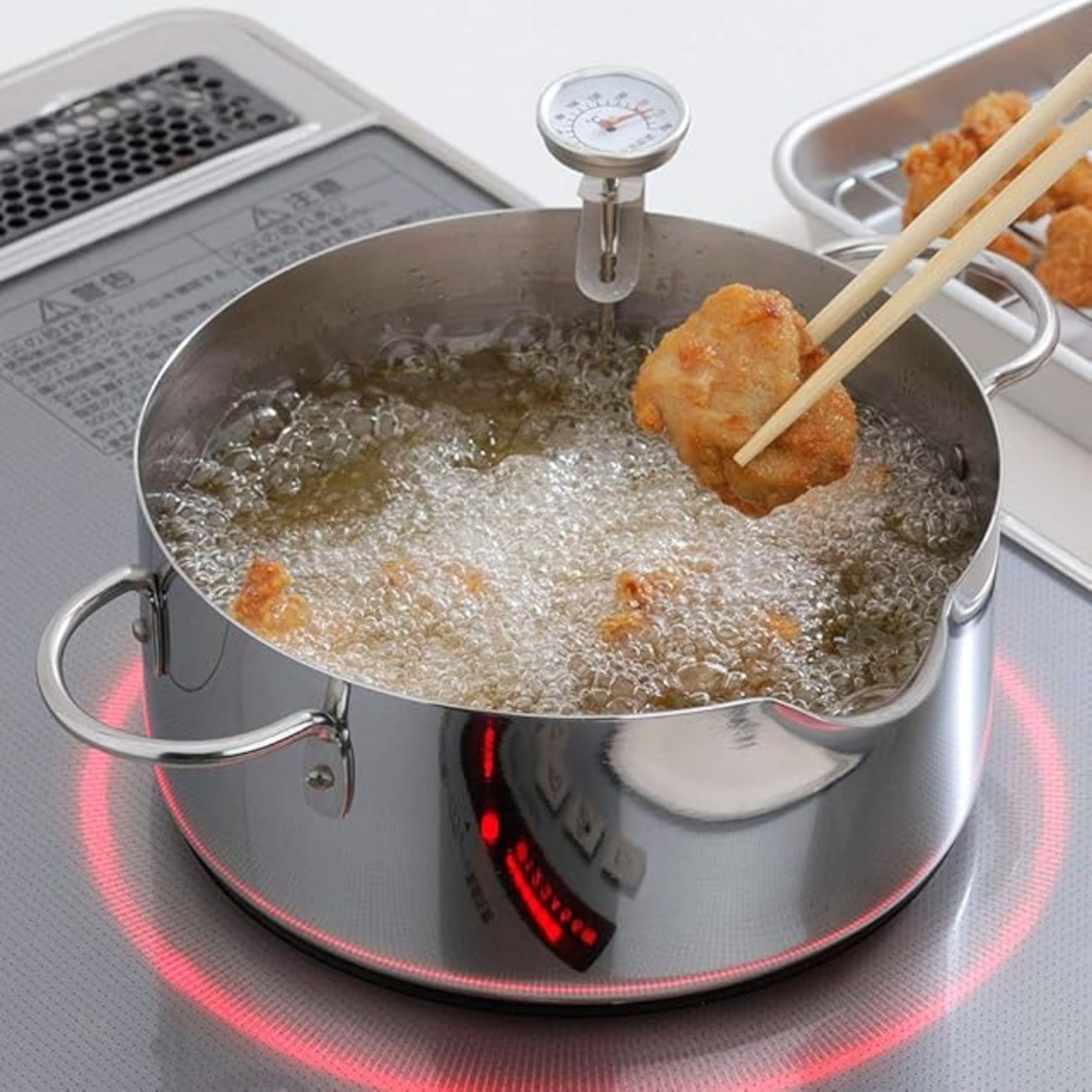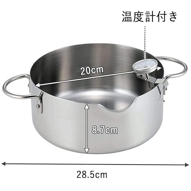 下村企販 温度計付き 天ぷら鍋 揚げ鍋 20cm 【日本製】 油をきれいに注げる 揚げ頃が分かる 天ぷら 揚げ物 コロッケ とんかつ 厚揚げ 適正1.2L ステンレス 燕三条 35480
