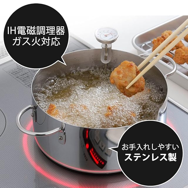 商品名:下村企販 温度計付き 天ぷら鍋 揚げ鍋 20cm 【日本製】 油をきれいに注げる 揚げ頃が分かる 天ぷら 揚げ物 コロッケ とんかつ 厚揚げ 適正1.2L ステンレス 燕三条 35480