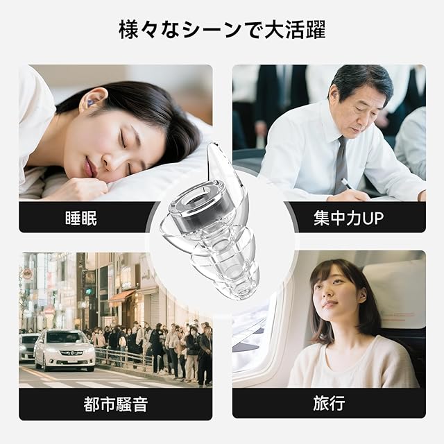 【様々なシーンで活躍】 この聴覚保護耳栓は寝る時だけでなく、読書や勉強、仕事の集中力アップも活用できます。自宅、ホテル、キャンプ場、ライブ、通勤、旅行など、長距離移動中にも便利です。Quietideのイヤープロテクターをお試しください。また、大音量が流れる場所、日常の生活音、都会の喧騒、混雑したバス、電車、飛行機などうるさい環境での不快感がある時にもご利用いただけます。