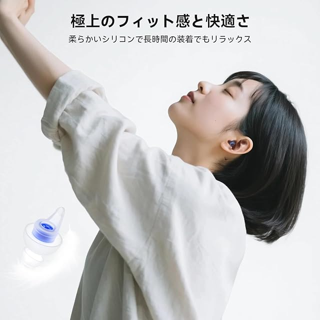 【2種類の耳栓 快適なつけ心地】2種類の耳栓を入れ、自分の耳に合う耳栓を選んでご利用いただけます。また、色の異なる2ペアのフィルターをご用意、自分の好みに合わせて自由に組み合わせられます。耳栓は、人間工学に基づいた画期的なデザイン、ユニークな形で耳穴に吸い付くようなフィット感があり、快適なつけ心地です。また、シリコン素材を採用され、柔軟性抜群で、長時間装着しても耳が痛くなりません。中空設計で、良好な通気性も発揮して、装着時の不快感や、耳に水が入ったような閉塞感はありません。