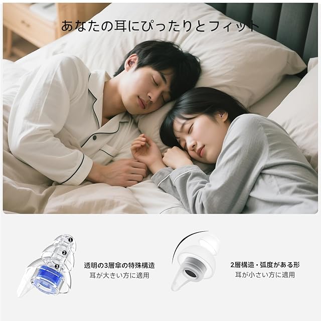 【繰り返し使用可能&特製ケース付き 紛失防止】汚れても水洗いすれば清潔に再使用でき、衛生的です。長期間使い続けても弾力が落ちくることもなく、繰り返し使用可能です。2組セットで、友達や家族とシャアすることができます。また、個別包装で、衛生的です。紛失を防止するために、ケースも付きます。外出や家でも収納簡単で、持ち運びも楽になります。着脱も簡単で、装着は耳栓の先端のハンドルを握って、ゆっくりと外耳道の内に挿入してから、耳の内部の形に沿ってぴったりとフィットします(耳が快適である限り)。不要なときは細長いのハンドルを握って、ゆっくり取り外 します。