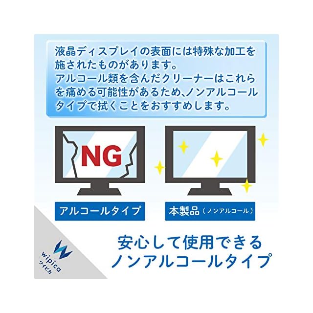 デリケートな液晶ディスプレイにも安心して使えるノンアルコールタイプの液晶用ウェットクリーニングティッシュです。