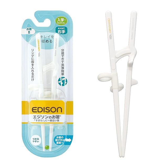 EDISONmama(エジソンママ) エジソンのお箸II 右手用 ホワイト 入学~手の小さい大人 18.5cm 授乳・食事用品 食器・テーブルウェア リング 指位置調整 すべり止め加工 交差防止 掴みやすい 洗浄簡単