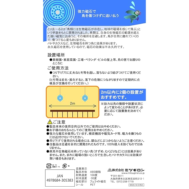 商品名:ミツギロン(Mitsugiron) 鳥獣害 とり はと ベランダ とり去~る 2 ブルー 11.3×9×1.2cm 迷惑 鳥 撃退 EG-16