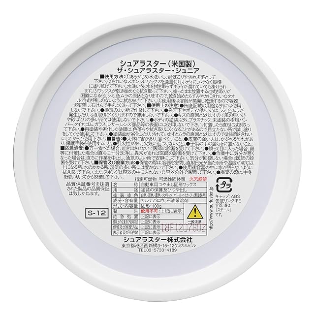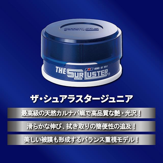 SurLuster(シュアラスター) ザ・シュアラスター ジュニア 100g 固形ワックス 天然カルナバ蝋 艶 スポンジ付き ツヤ 光沢 保護 自動車 全塗装色 ノーコンパウンド S-12