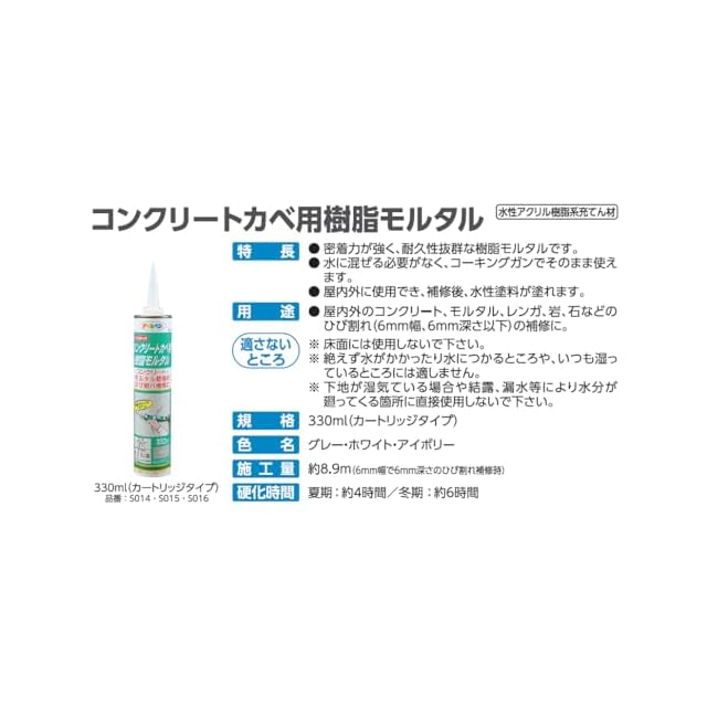 商品名:アサヒペン 充填材 コンクリートカベ用 樹脂モルタル 330ml S014グレー モルタル 壁用 ひび割れ 日本製