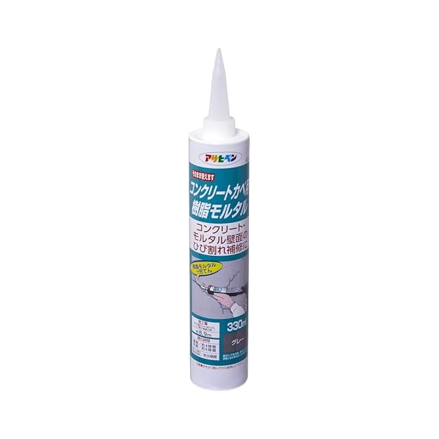 アサヒペン 充填材 コンクリートカベ用 樹脂モルタル 330ml S014グレー モルタル 壁用 ひび割れ 日本製