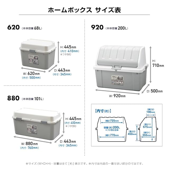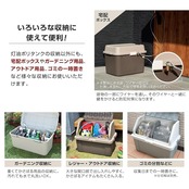 ※収納以外の用途で使用しないでください。 ※ふたの取り付け時に指や手を挟まないようご注意ください。 ※蓋の上に重いものや腰かけたりしないでください。 ※防水構造ではありません。雨水が浸入することがありますのでご注意ください。 ※長時間直射日光があたる場所や雨ざらしの場所は避けてください。