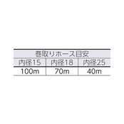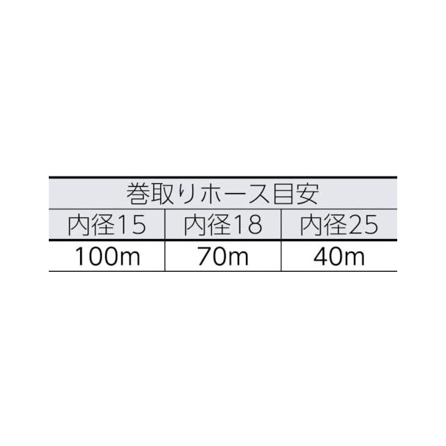 巻取量:内径15mmホース×100m・内径18mmホース×70m・内径25mmホース×40m