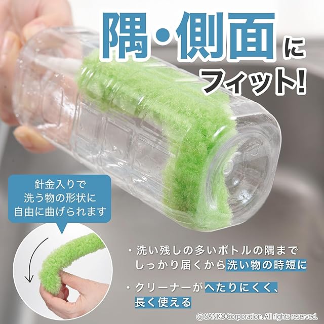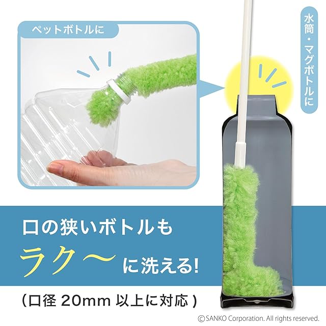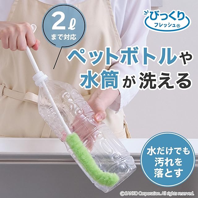 サンコー ブラシ ペットボトル洗い ピカピカ細口ボトル洗い グリーン びっくりフレッシュ 日本製 全長42cm BO-31