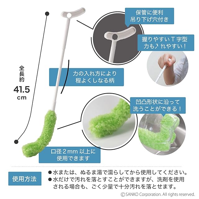 商品名:サンコー ブラシ ペットボトル洗い ピカピカ細口ボトル洗い グリーン びっくりフレッシュ 日本製 全長42cm BO-31