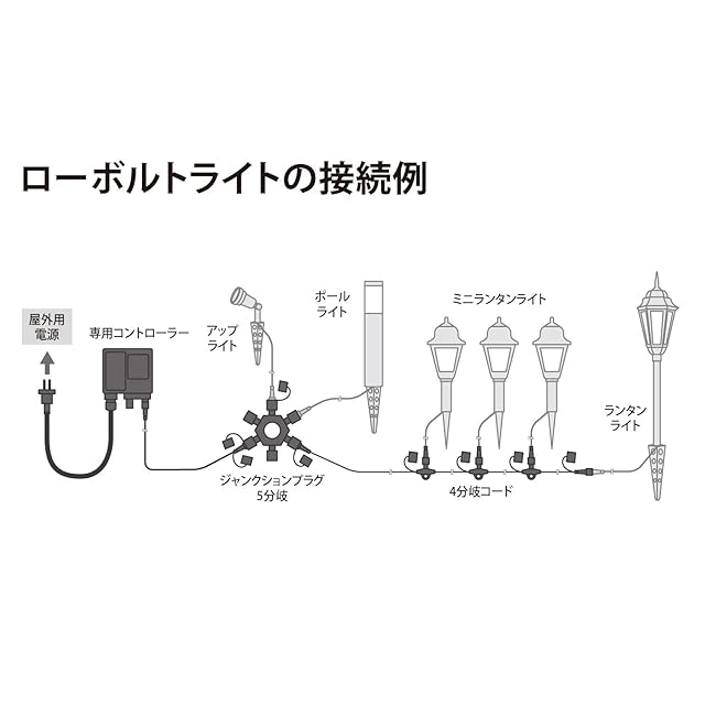 ローボルトガーデンライトの延長に。コードの長さが足りなくなったときや、ジャンクションプラグとコントローラーの接続に。