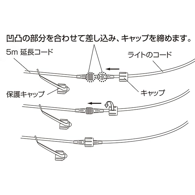 凹凸を合わせてプラグを差し込み、キャップを回すだけで接続完了。特別な技術、資格は不要。