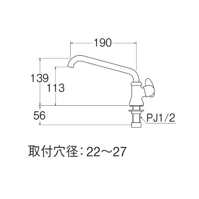商品名:SANEI(サンエイ) ミニセラ立形上向自在水栓 レバーハンドル 90度開閉 JA575-13