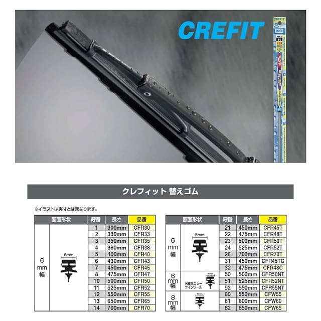 商品名:PIAA(ピア) ワイパー 替えゴム 600mm 【クレフィット】 メーカー品質のグラファイトコーティングゴム 1本入 呼番81 CFW60