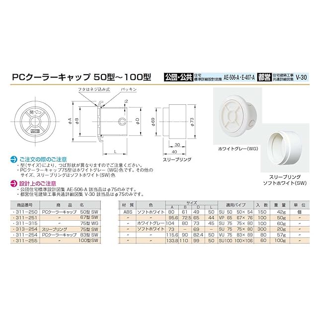 機構(公団)住宅AE-506-A 、公共住宅E-407-A 該当品はφ75のみです。