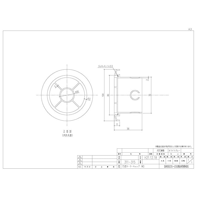 杉田エース エース 換気口 部材 PCクーラーキャップ 75型