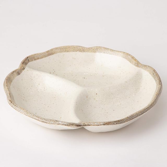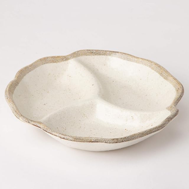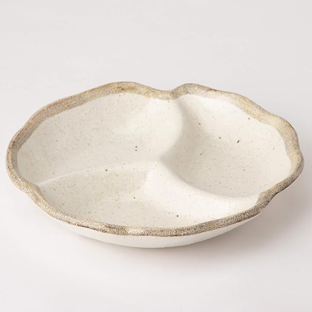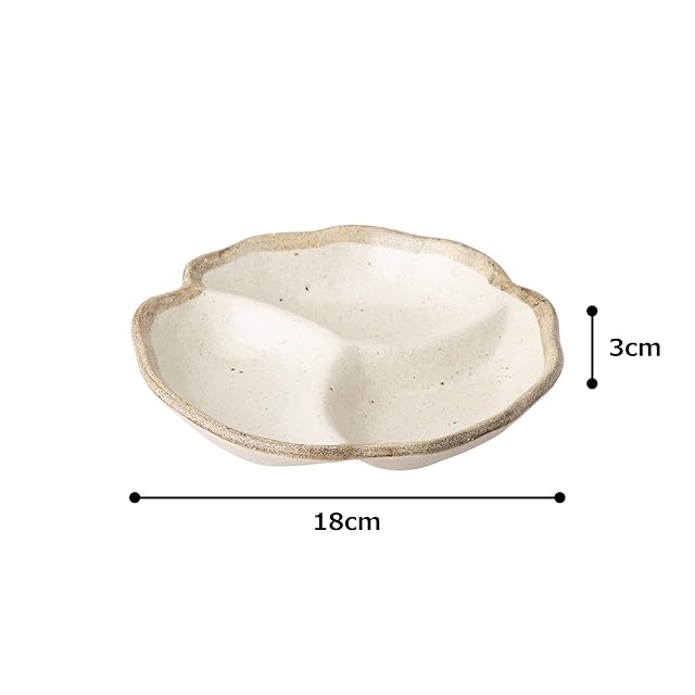 商品名:美濃焼 白唐津 3仕切り皿 オードブル皿 約18×3cm 小分け皿 区切り お皿 焼肉皿 電子レンジ対応 食洗機対応 日本製 K80032