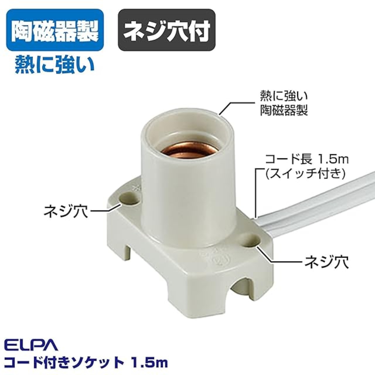 エルパ (ELPA) コード付ソケット 照明 簡易照明 電球 E12 中間スイッチ 1A 125V ホワイト KP-M1215NH(W)