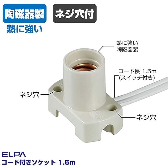 商品名:エルパ (ELPA) コード付ソケット 照明 簡易照明 電球 E12 中間スイッチ 1A 125V ホワイト KP-M1215NH(W)