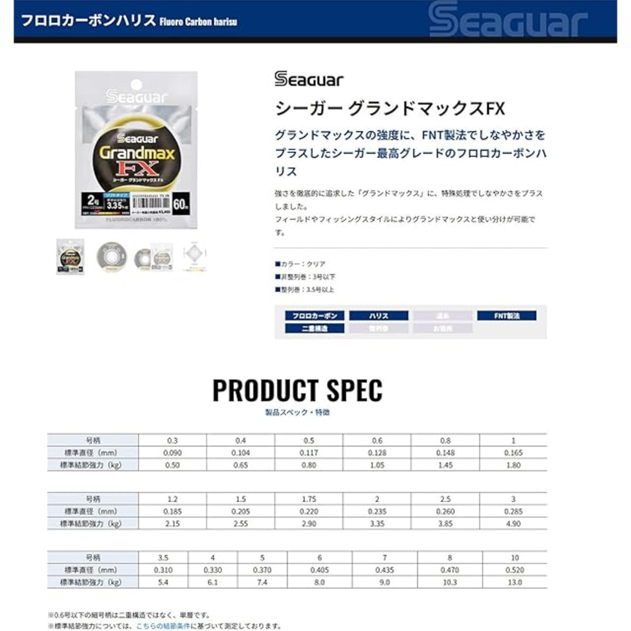 商品名:シーガー(Seaguar) ハリス シーガー グランドマックスFX 60m 3.5号 クリア