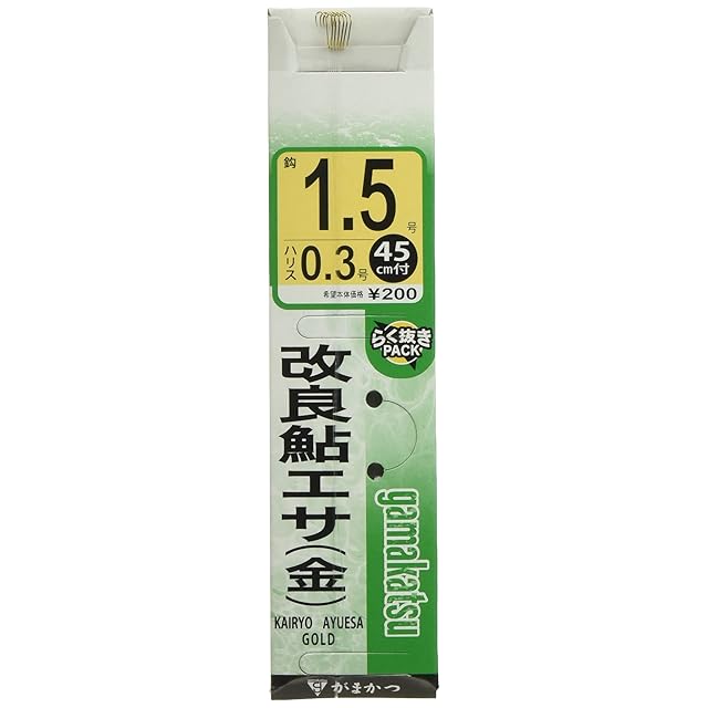 商品名:がまかつ(Gamakatsu) 糸付 改良鮎エサ フック 金 1.5号-ハリス0.3 釣り針