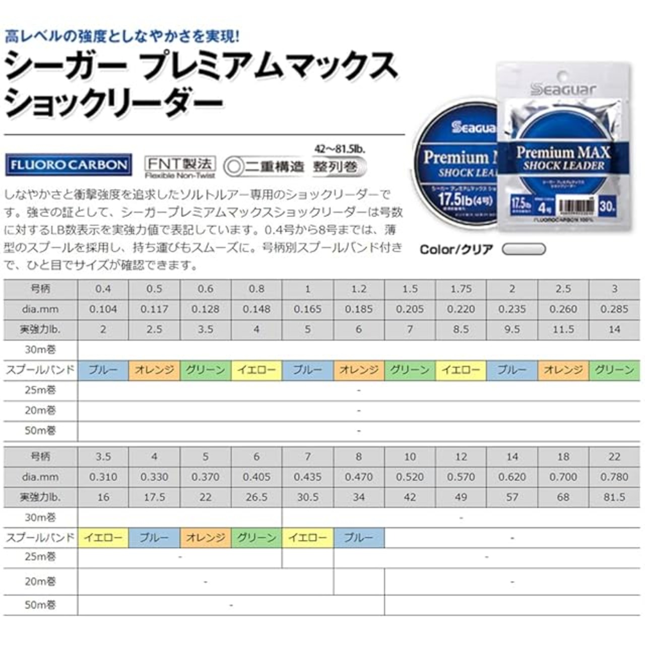 商品名:シーガー(Seaguar) リーダー シーガー プレミアムマックス ショックリーダー50m 57lb 14号 透明