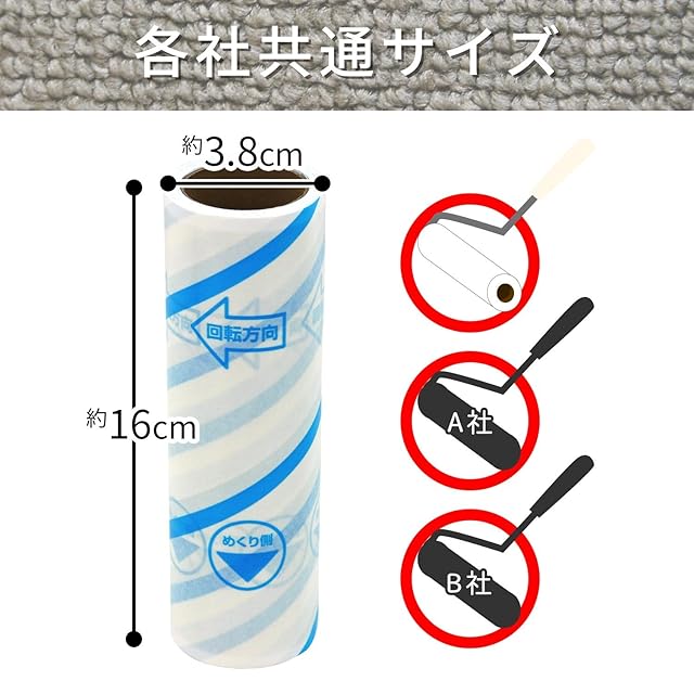 めくり口がわかりやすい【めくり側お知らせ矢印】と【切れ端まるわかりライン】が印刷されています。転がす方向がわかりやすい【回転方向矢印マーク】付きです。