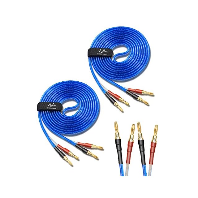 商品名:LRセット【バナナプラグ加工済】By 【WYVERN AUDIO】 24K 純銅プラグ スピーカー ケーブル 完成品ハンダ済み 青 2本1組セット (1.5m)