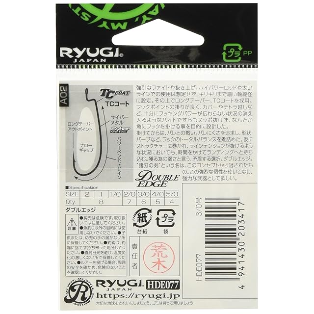 商品名:リューギ(RYUGI) ダブルエッジ HDE077 フック #3/0 釣り針