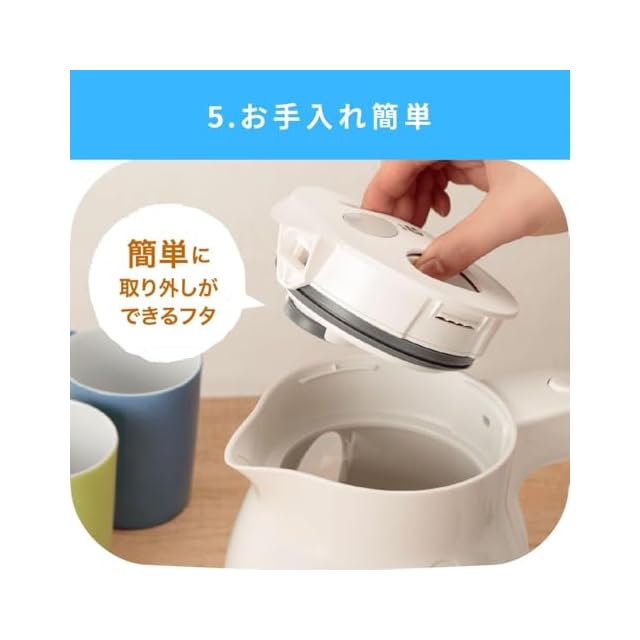 素材・材質:本体・ハンドル・ふた・電源スイッチ・目盛り付き窓・電源プレート・注ぎ口カバー/ポリプロピレン、内側底面/ステンレス、電源コード/クロロスホン化ポリエチレンゴム