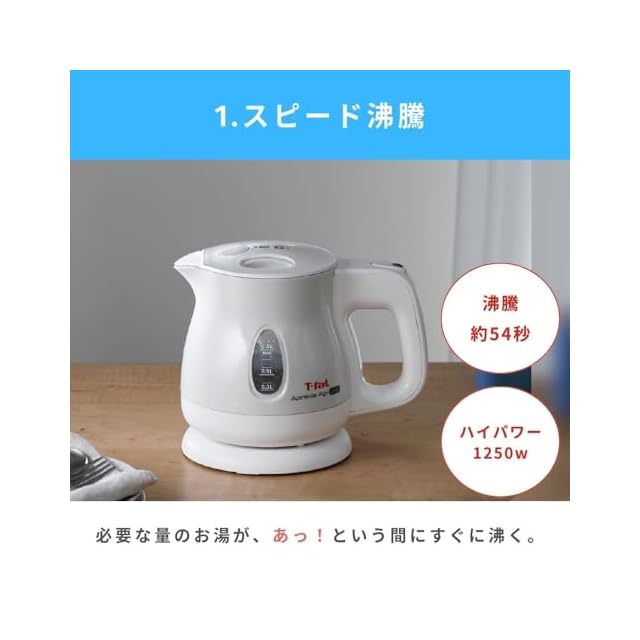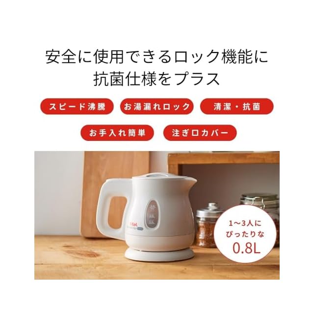 【オンライン限定】ティファール 電気ケトル 0.8L 抗菌(Ag+) お湯漏れロック機能付き コンパクト 「アプレシア エージー・プラス ロック パールホワイト」 KO4301JP
