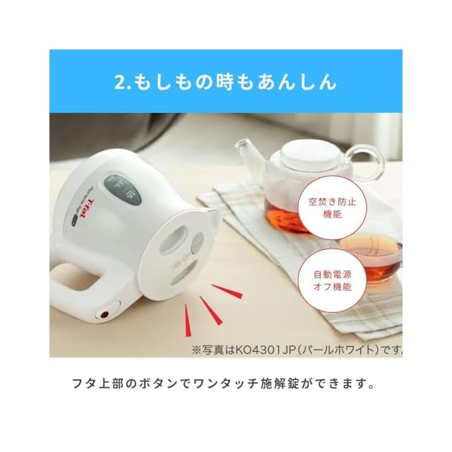 商品名:【オンライン限定】ティファール 電気ケトル 0.8L 抗菌(Ag+) お湯漏れロック機能付き コンパクト 「アプレシア エージー・プラス ロック パールホワイト」 KO4301JP