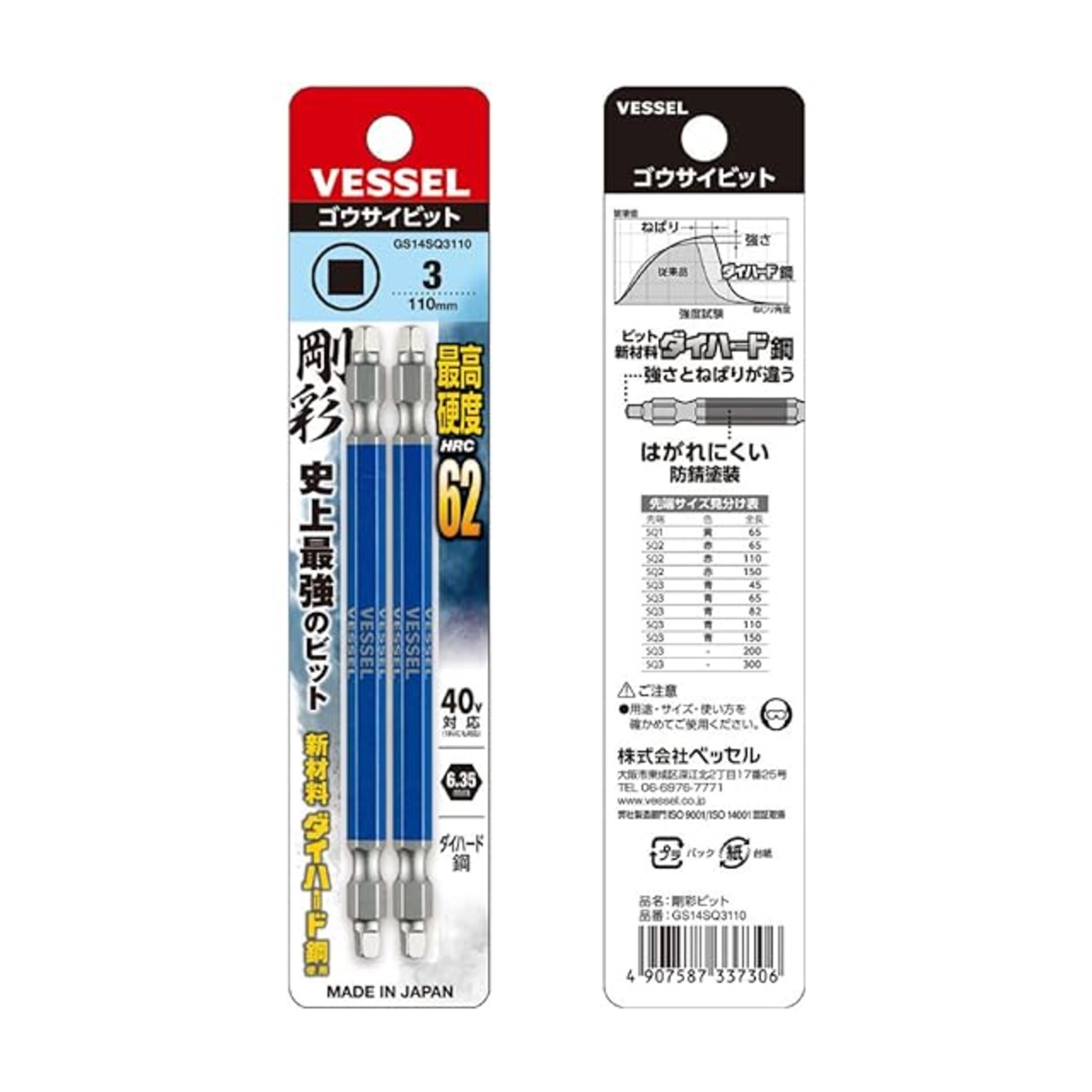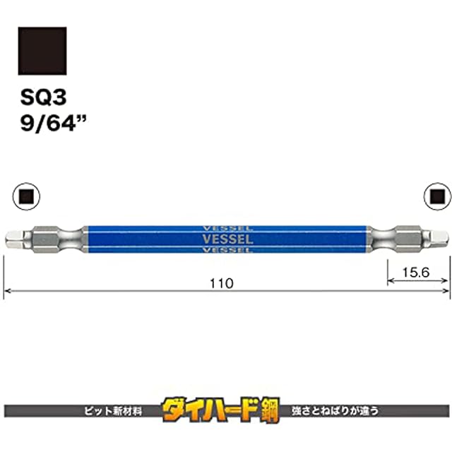 商品名:ベッセル(VESSEL) 40V対応 両頭スクエア 剛彩ビット SQ3×110 2本組 GS14SQ3110