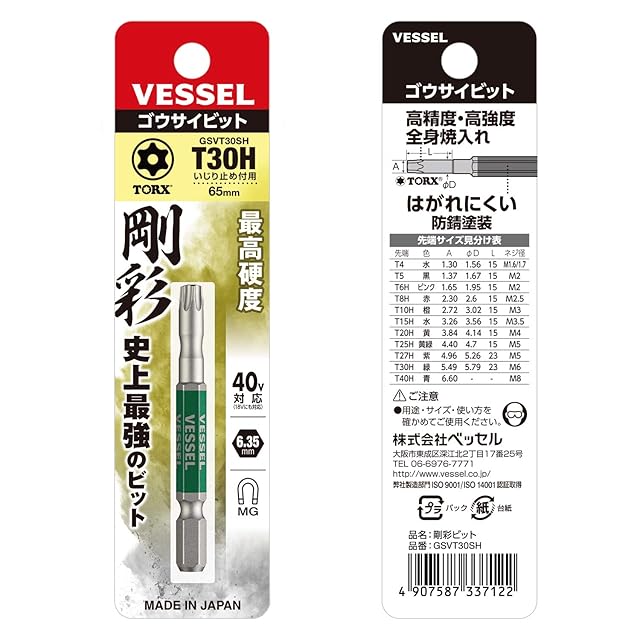 ベッセル(VESSEL) 40V対応 片頭トルクス 剛彩ビット T30H×65 1本 GSVT30SH