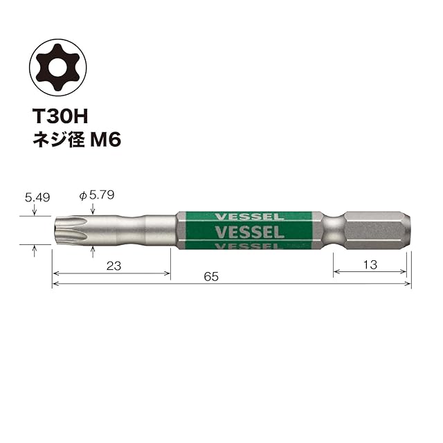 商品名:ベッセル(VESSEL) 40V対応 片頭トルクス 剛彩ビット T30H×65 1本 GSVT30SH