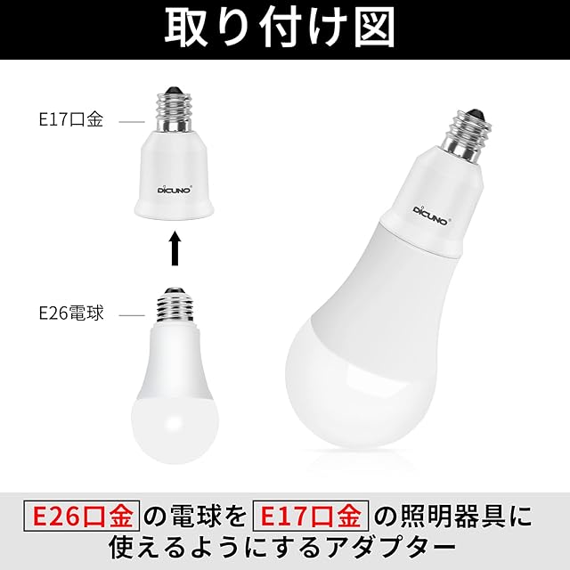 商品名:DiCUNO E17-E26口金変換アダプター 変換ソケット 熱に強い 2個セット
