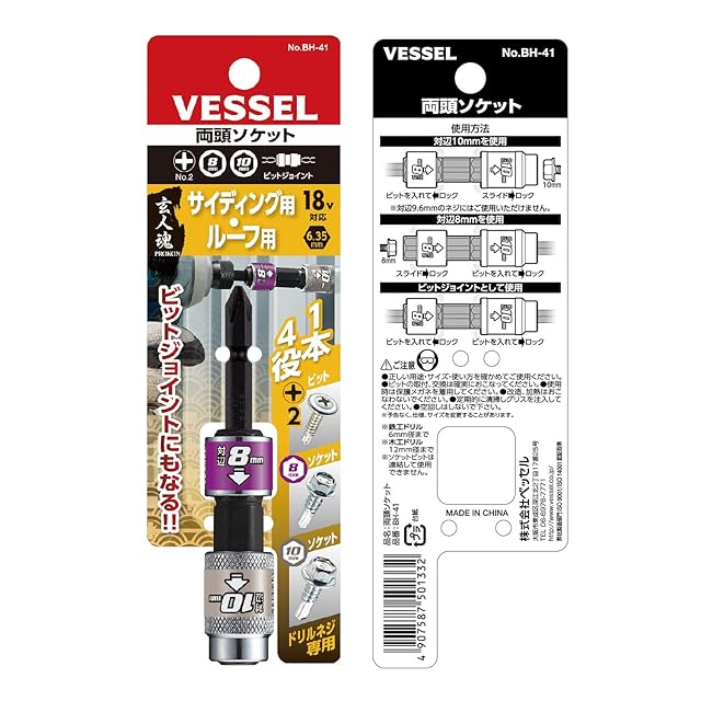 ベッセル(VESSEL) 両頭 ソケット 対辺8 対辺10 +2 ビットジョイント 4WAY BH-41