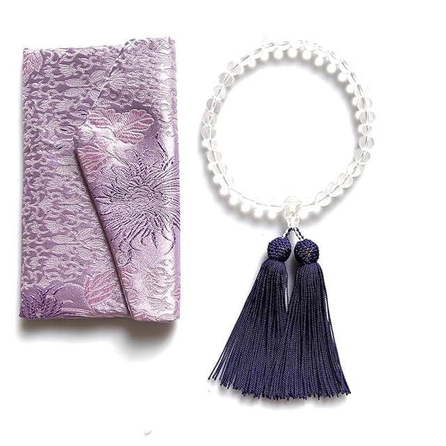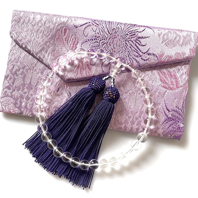 数珠 女性用 本水晶 正絹房 紫紺 略式数珠 念数珠 念誦 じゅず 葬式 法事 法要 じゅず 約7ミリ数珠袋