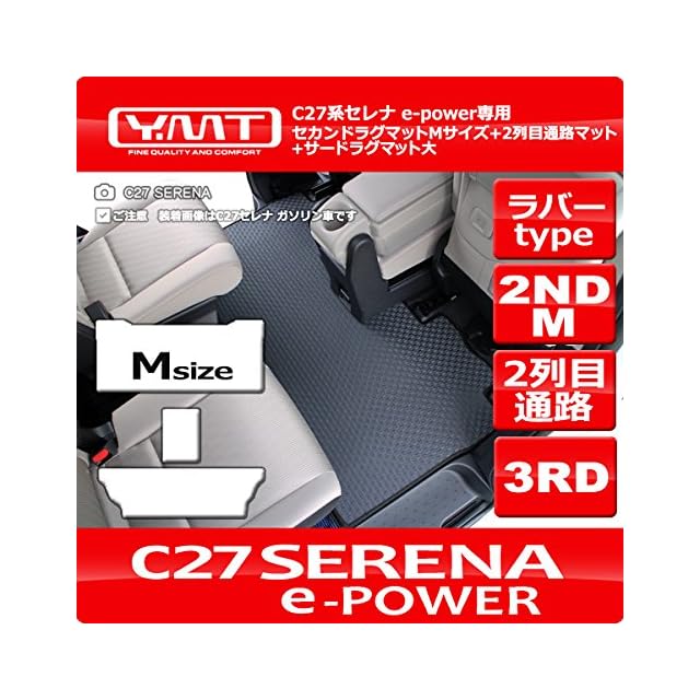 YMT 新型セレナ e-power C27 ラバー製セカンドラグマットMサイズ+2列目通路マット+3RDラグマット大 C27-EP-R-2ND-M-3RD
