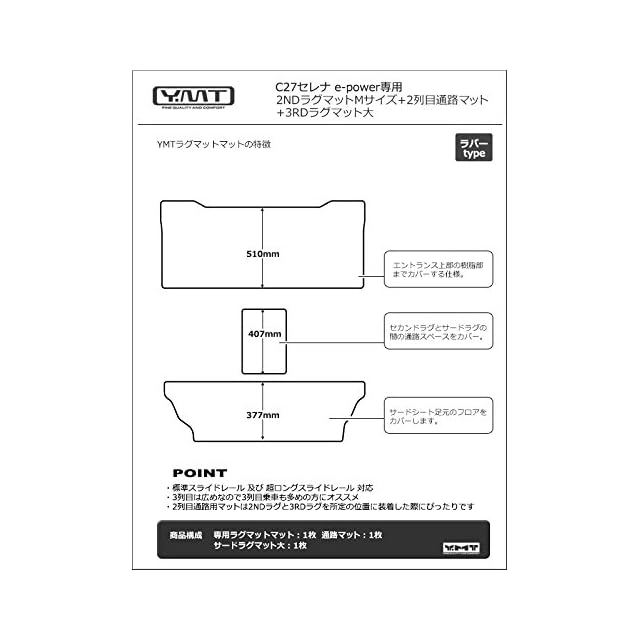 商品名:YMT 新型セレナ e-power C27 ラバー製セカンドラグマットMサイズ+2列目通路マット+3RDラグマット大 C27-EP-R-2ND-M-3RD