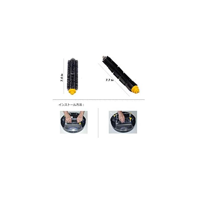 <b>【エアロブラシの特徴】</b><br>中央で回転する2本のブラシが協働して、ゴミやペットの毛などをかきこみます。<br>カーペットの中に入り込んだ細かいゴミなどを綺麗に除去可能です。<br><br><b>【エアロブラシの装着方法】</b><br>1.本体裏側のブラシ部分にある黄色の爪を押しながらカバーを開けます<br>2.ブラシを2部外れす(簡単に外れます)<br>3.方向・色を間違えないように交換します<br><br><b>【フィルターの特徴】</b><br>フィルターは掃除機の浄化性能を維持し、ホコリや花粉、他のアレルゲンを防ぐすることが可能です。<br>ルンバの排気が弱くなってきたと感じられる場合はフィルターを交換し、掃除ロボットの寿命を延ばし、快適な家を与えることが可能です。<br>壁際や角の取りにくいゴミをかきだします。ブラシが磨耗や破損した時に交換してください。<br><br><b>フィルタのインストール手順:</b><br>1.ゴミ箱を開きます。<br>2.フィルターボックスを引き出す。<br>3.フィルタを配置する。<br>4.ごみ箱を閉じる。<br>5.元の場所に置きます。<br><br><b>【クリーニングツール】</b><br>体積した髪の毛等を取り除いて、1-3回を使った後、洗って綺麗に保ってください<br><br><b>【メーカー】</b><br>商品到着後90日間のがございます。その他ご不明点やご心配な点がございましたらお気軽にお問い合わせ下さいませ。<br><br><b>【パッケージに含まれる】</b><br>1x メインブラシ<br>1x フレキシブルブラシ<br>3x エッジクリーニングブラシ<br>3x ダストカットフィルター<br>2x クリーニングツール<br>3xネジ<br>