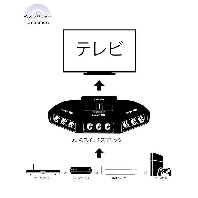 Fosmon AV セレクター 切替器 3入力1出力 コネクタ 3ポート【RCAスイッチ + RCAコンポジット AVケーブル付】 (3入力1出力)