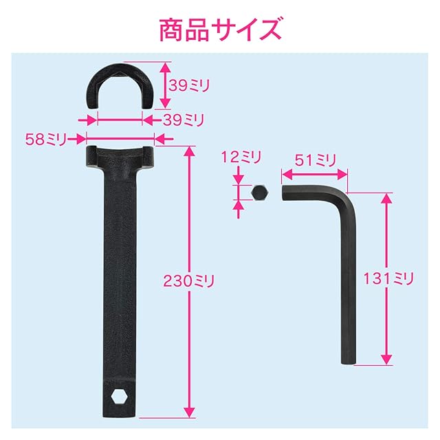 ハンドルのスパナサイズ:対辺12mm